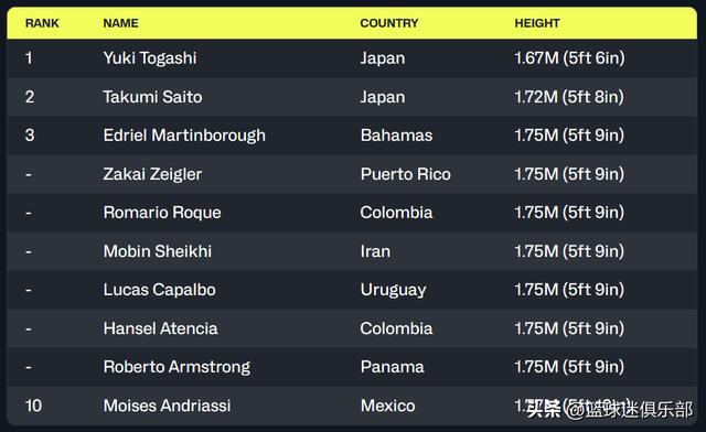 单单等于或低于175的球员,就足足有9位![泪奔]