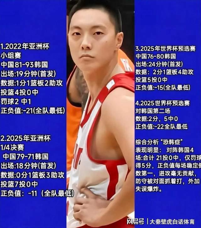 有球迷已经做出一张图,里面的数据无不证明,胡明轩已经是中国男篮“恐韩症”的代表。
