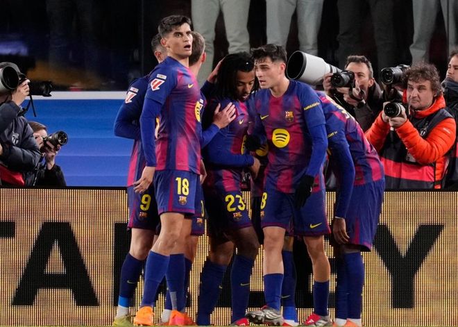 下半场易边再战,马竞率先进行换人调整,加拉格尔替补上场。第51分钟,阿尔瓦雷斯小角度吊门,高度不够,门将把球没收。紧接着,拉菲尼亚在禁区左侧抽射远角,踢偏了。第65分钟,奥尔莫在禁区内推射破门,帮助巴萨反超比分。第79分钟,阿尔马达突入禁区左侧,晃开防守球员射门,结果踢偏了。补时阶段,费兰-托雷斯进球杀死比赛。最终,巴萨3-1逆转击败马竞,联赛取得5连胜。