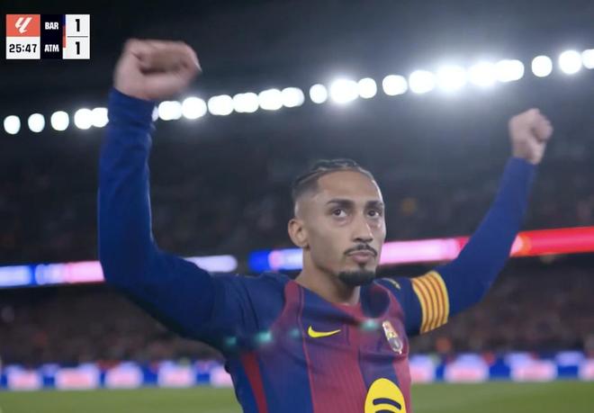 此役主场对阵马德里竞技,拉菲尼亚在比赛第26分钟接佩德里助攻破门,帮助巴塞罗那将比分扳为1-1。