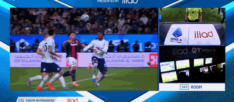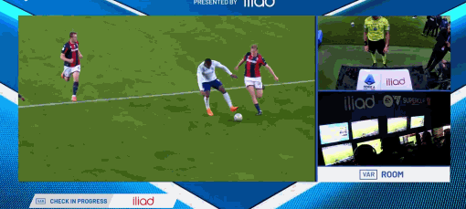 第60分钟,博尼禁区内倒地,主裁判观看视频回放后取消点球判罚